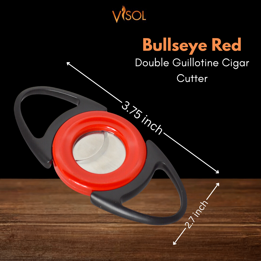 βœ” Bullseye Double-Guillotine Cutter (Red) – Built for precision, this cutter uses stainless-steel blades to deliver clean cuts for cigars up to 56 ring gauge.