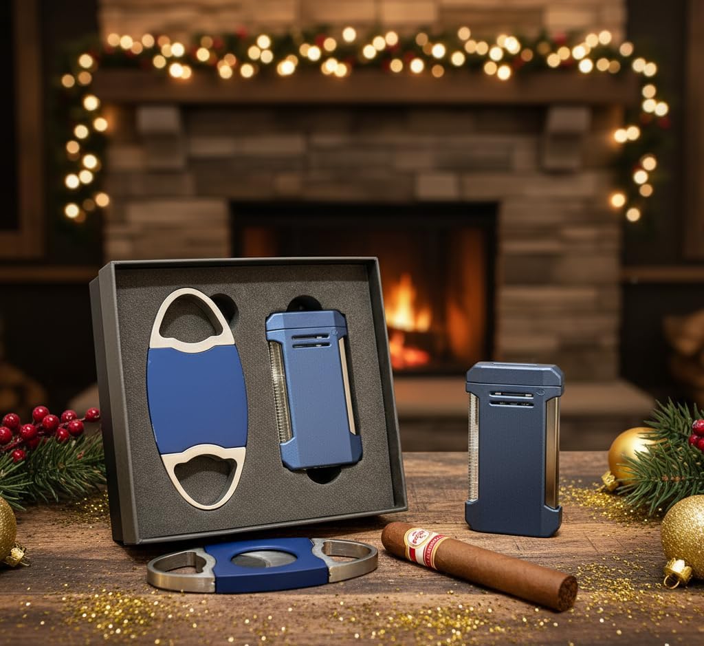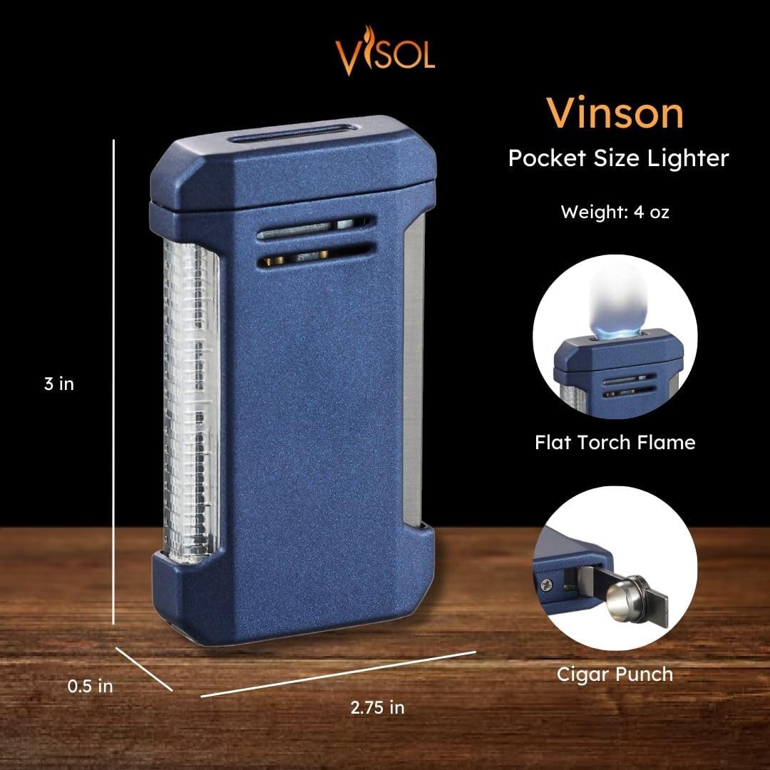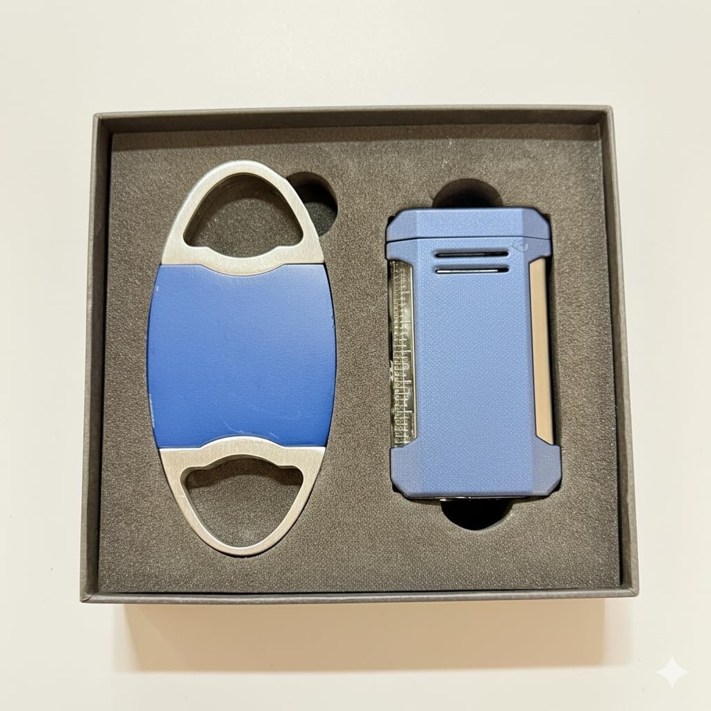 Visol Gift Set - Perfecto Blue Double Guillotine Cutter & Vinson Blue Flat Torch Lighter