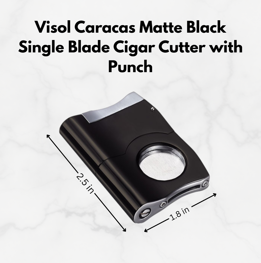 Visol Caracas Matte Black Single Blade Cigar Cutter with Punch