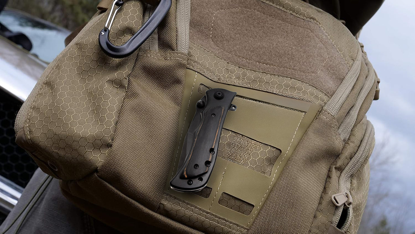 This pocket knife is the perfect size for traveling and keeping close to your person for any situation. The ridge on the handle gives you a better grasp on the blade and better support. A lanyard hole can be found near the bottom of the handle and a belt clip on the side.