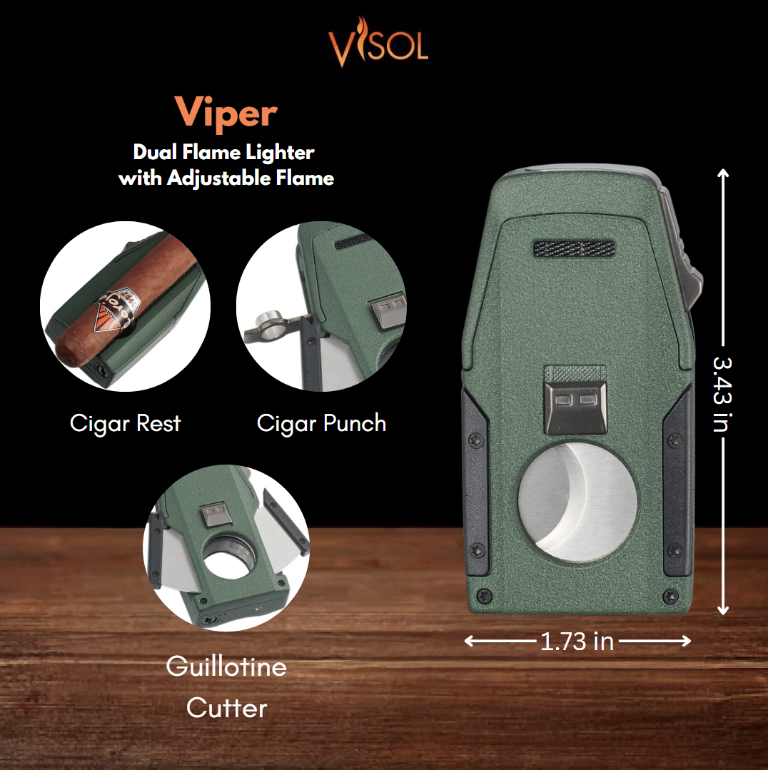πŸ”₯ Elevate your cigar experience with the Visol Viper β€” a practical, all-in-one dual flame lighter designed for everyday reliability and convenience.