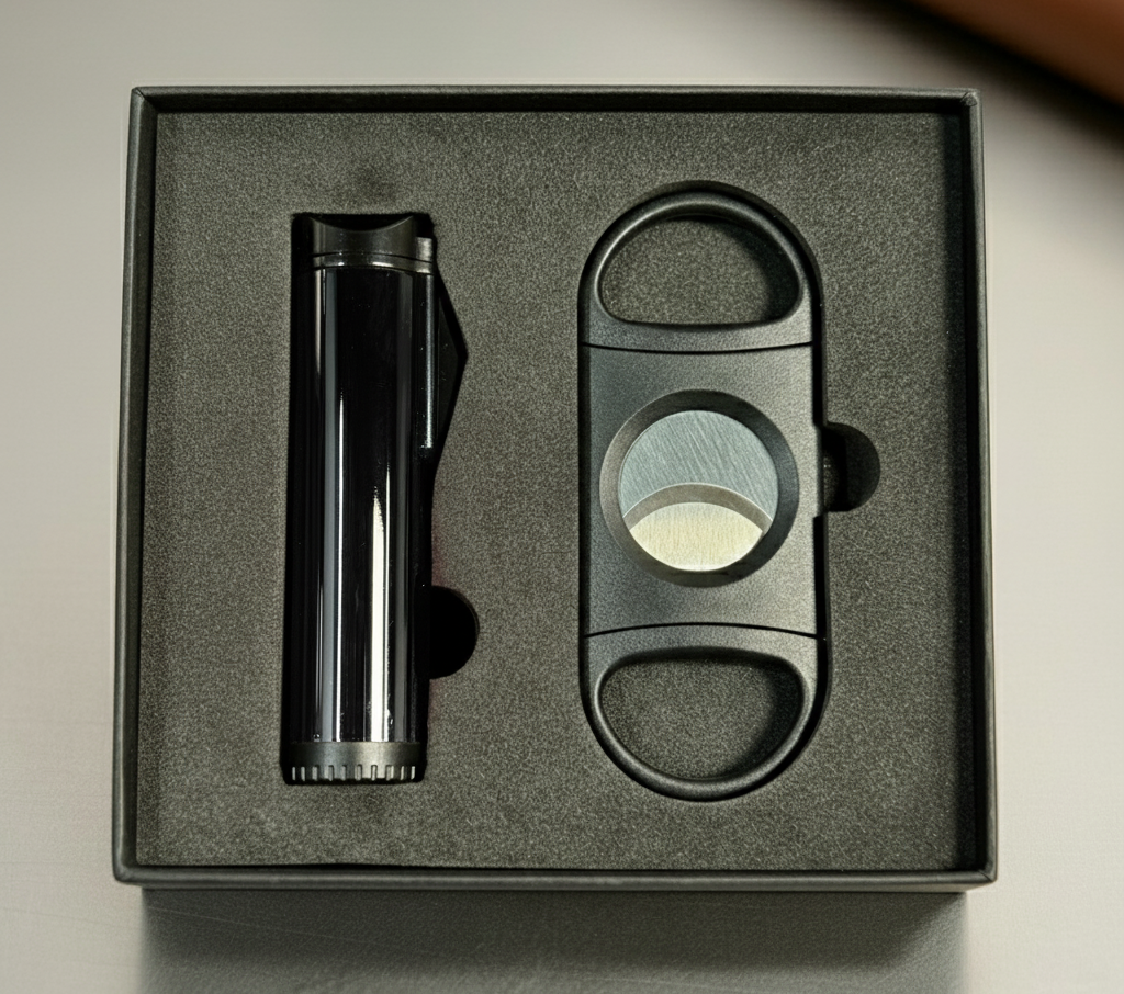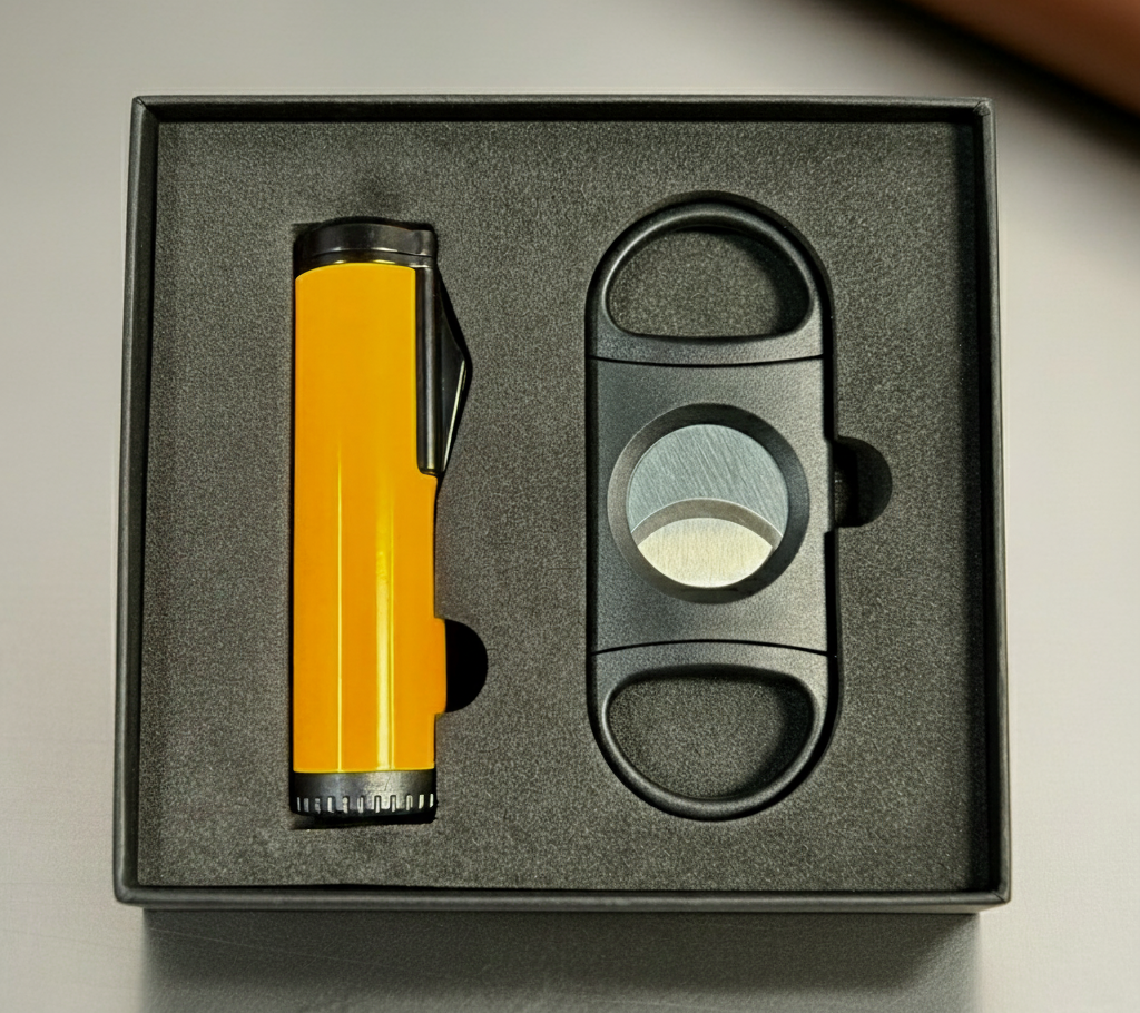Custom Cigar Gift Set β Personalized Engraved Cutter & Triple Torch Lighter β Premium Cigar Accessories for Corporate, Holiday, and Groomsmen Gifts (Black,Red,Blue,Yellow,Gunmetal))